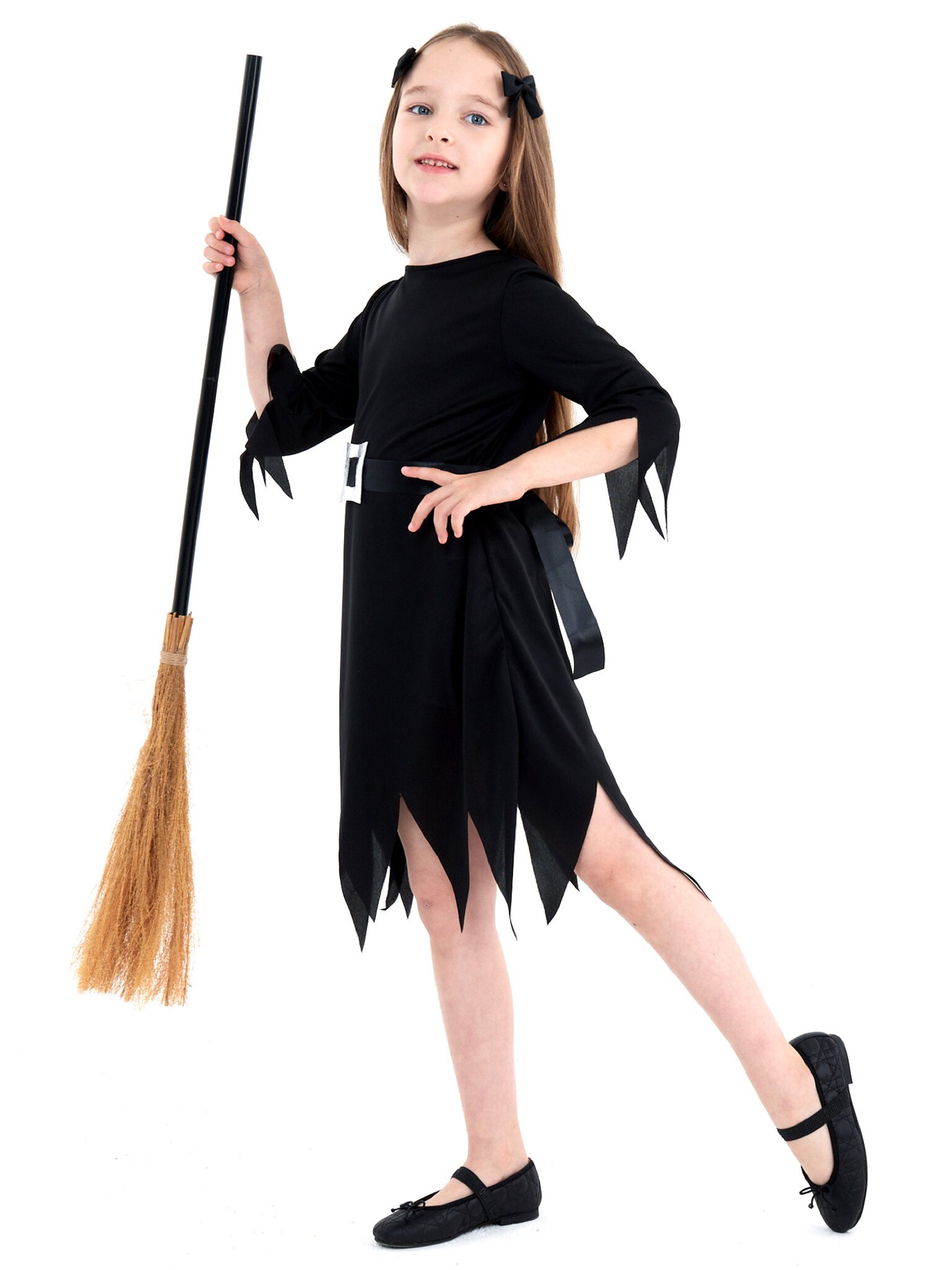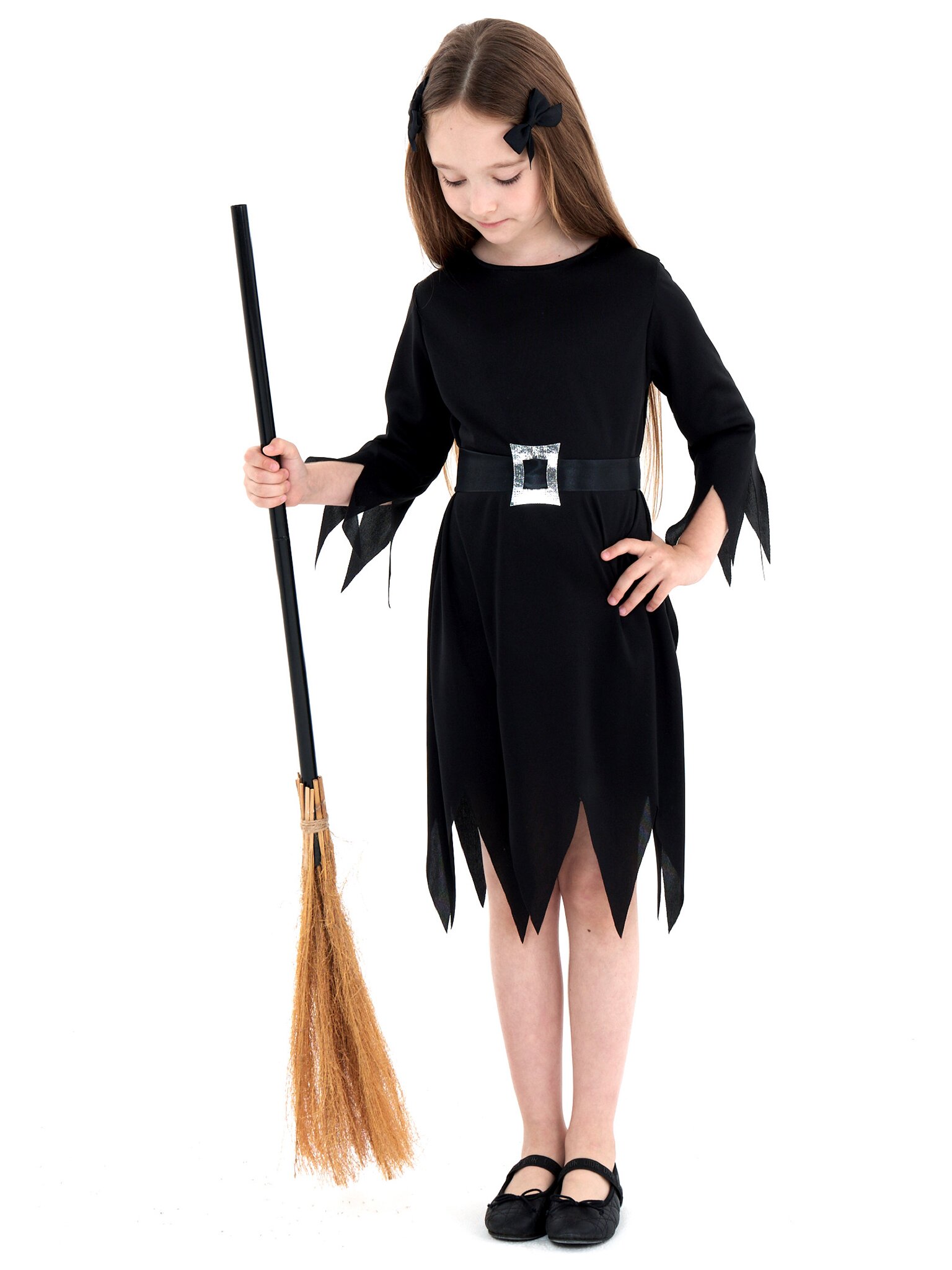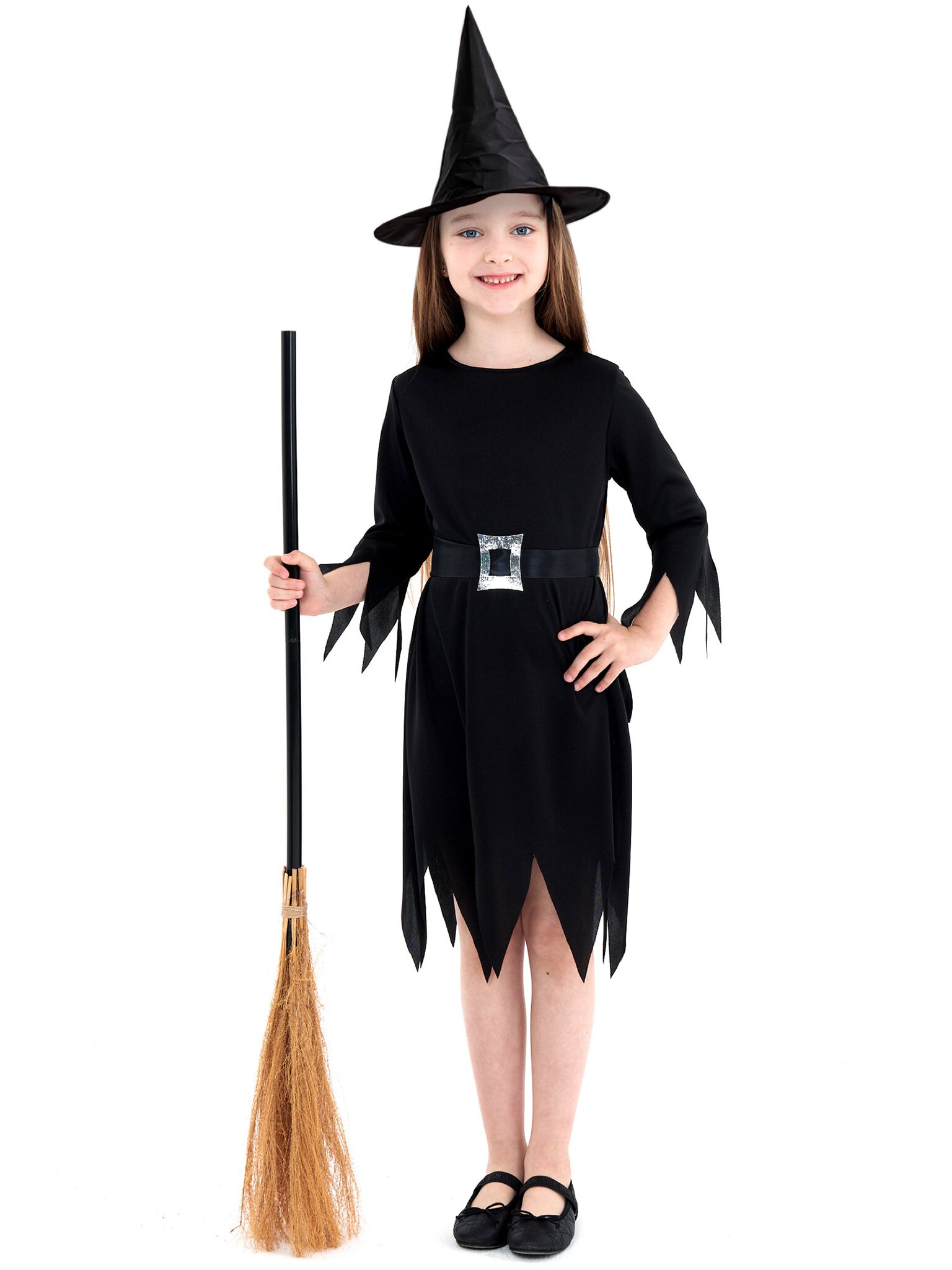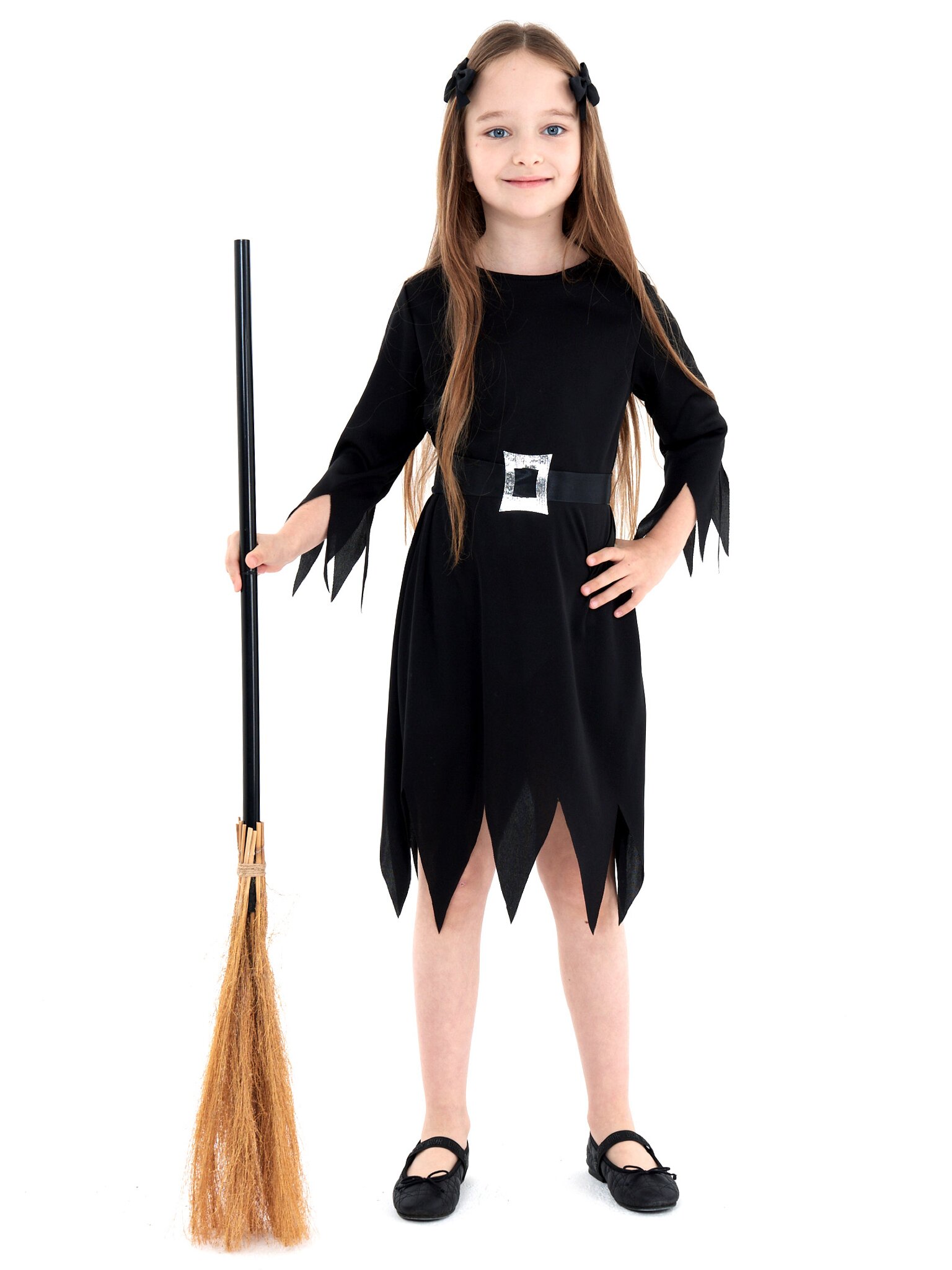 Детский костюм "Ведьмочка" — обретите магию на Хэллоуин! В комплект входят черное платье, шляпа и пояс, создающие запоминающийся образ. Изготовлен из прочного полиэстера, костюм обеспечивает комфорт и долговечность. Тематические детали подойдут для любых праздников, позволяя ребенку почувствовать себя настоящей колдуньей.